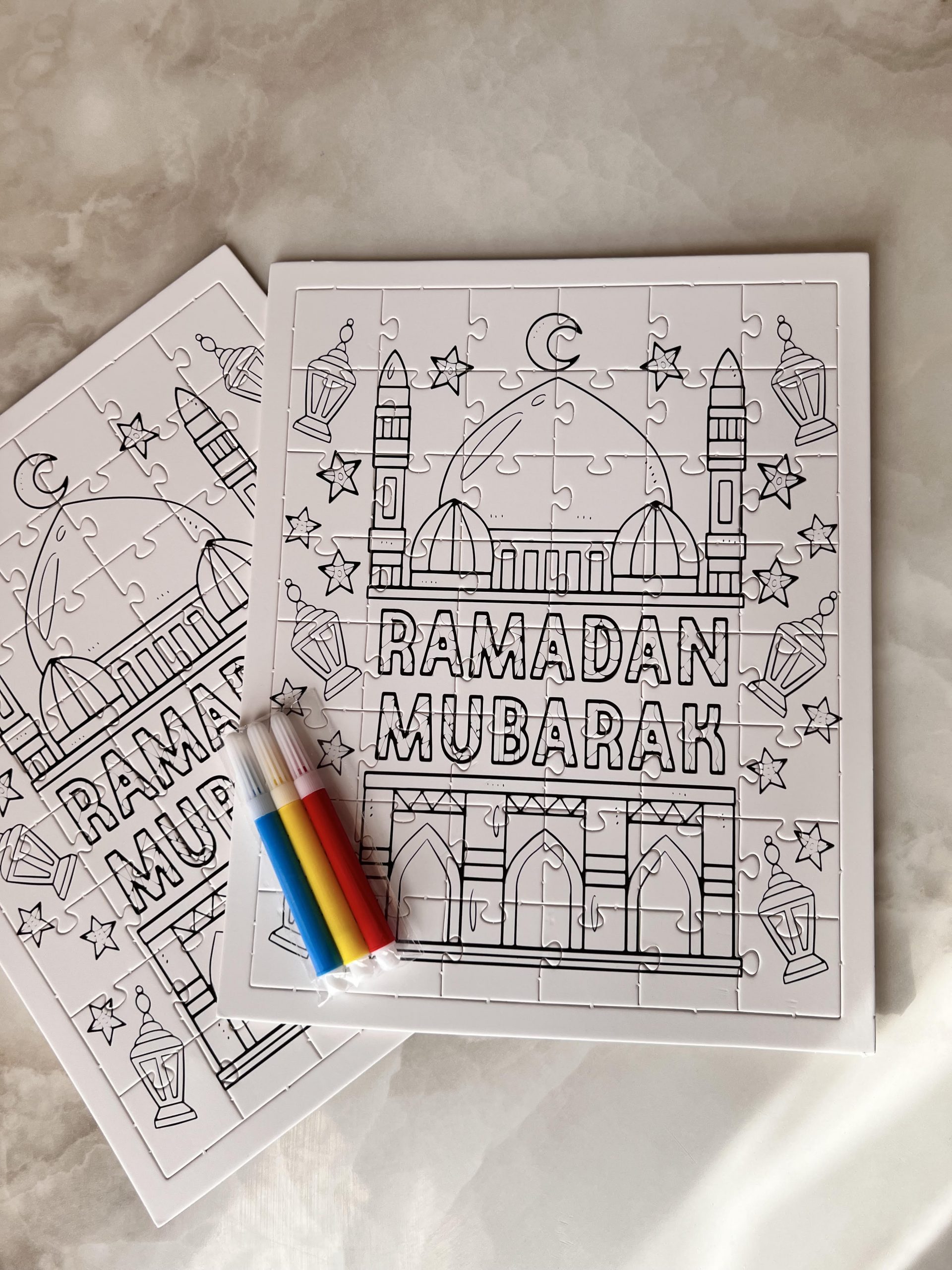 2 puzzles RAMADAN + 3 feutres à offrir aux enfants